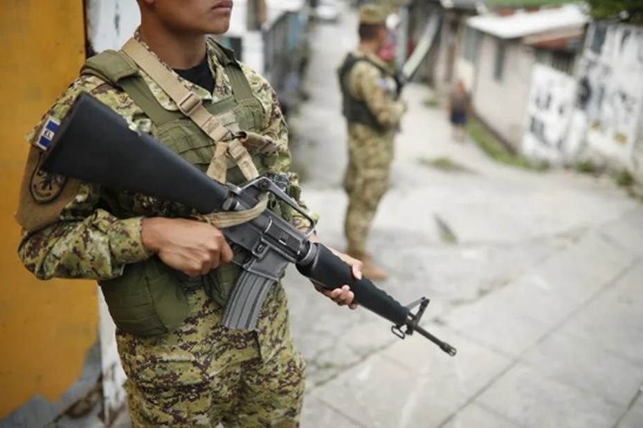 Salvadoran soldier guarding a street in San Marcos, El Salvador. EFE/ Rodrigo Sura